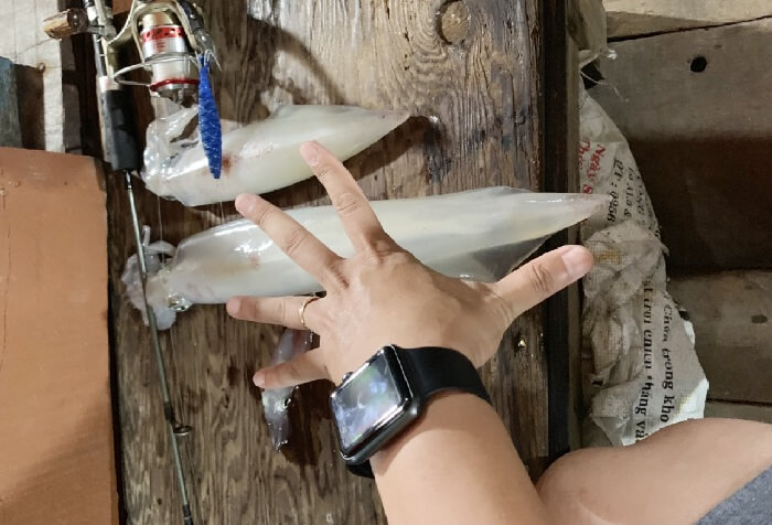 Thưởng thức mực câu tươi rói ngay trên tàu