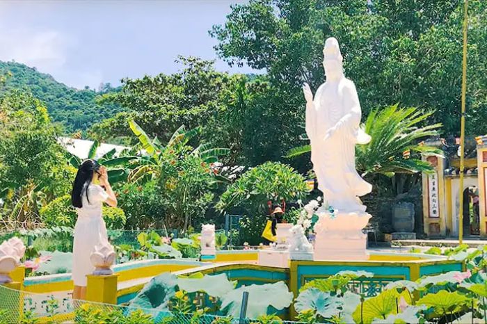 Tượng có mặt hướng về biển Đông, biểu hiện cho sự bao dung, chở che của bồ tát dành cho người dân địa phương. Nếu ghé nơi này vào mùa hè, bạn còn được chiêm ngưỡng hồ sen nở rộ, toả hương thơm ngát.