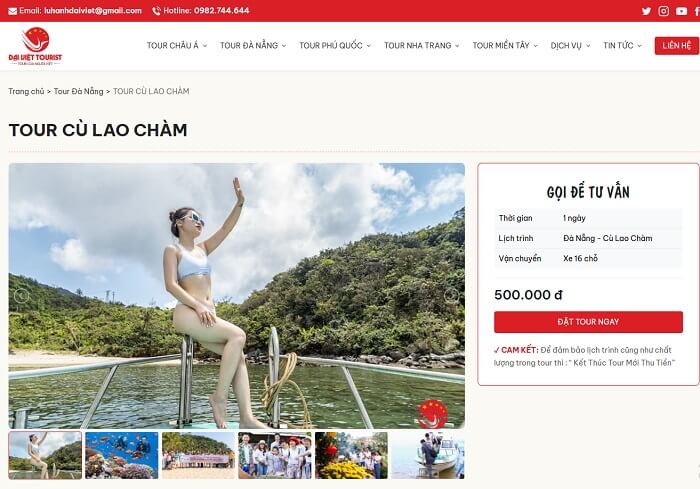 Đứng đầu trong list 10 công ty du lịch Cù Lao Chàm phải nhắc đến Đại Việt Tourist. Đây là một thương hiệu lữ hành tên tuổi tại Đà Nẵng được hình thành và phát triển vững chắc hơn 10 năm nay.
