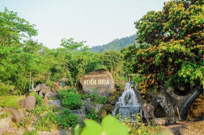 Suối Hoa là nơi sở hữu khí hậu trong lành, hệ thống động thực vật đa dạng, hồ bơi nhân tạo từ suối đầu nguồn. Thiên nhiên tươi đẹp ở đây được ví như liều thuốc an thần, giúp bạn bình ổn tâm trí, thư giãn tâm hồn.