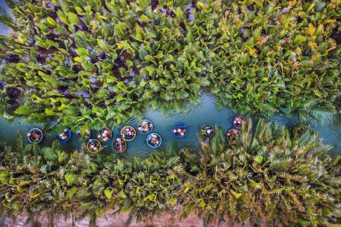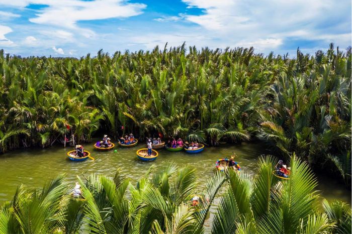 Vườn dừa 7 mẫu được ví như miền Tây sông nước giữa lòng Hội An. Mua vé rừng dừa Bảy Mẫu, du khách sẽ được ngồi thuyền thúng, len lỏi trong những rặng dừa xanh ngắt, tận hưởng bầu không khí trong lành.