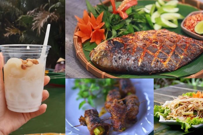 Trong hành trình khám phá rừng dừa Hội An, du khách sẽ được thưởng thức rất nhiều món ăn độc đáo. Những đặc sản của vùng Cẩm Thanh được bày biện trên đĩa một cách gọn gàng, đẹp mắt.