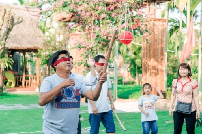 Ngoài hoạt động chèo thuyền thúng, chiêm ngưỡng các màn biểu diễn hấp dẫn, du khách có thể tham gia các trò chơi dân gian đầy thú vị. Khu du lịch có không gian rộng rãi để du khách trải nghiệm đua thuyền, câu cua, đi xe đạp thăng bằng, bịt mắt bắt dê…