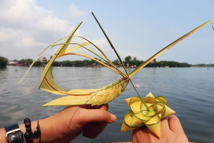 Giá đi rừng dừa Bảy Mẫu sẽ bao gồm hoạt động làm đồ lưu niệm độc đáo từ lá dừa. Từ những chiếc lá dừa nước đơn sơ, du khách có thể làm nên những món đồ thủ công xinh xinh để dành tặng bạn bè, người thân.