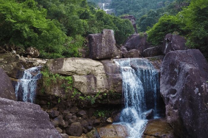 Tại đây, bạn sẽ được chiêm ngưỡng cảnh núi non, thác nước, rừng cây tuyệt đẹp. Những dòng thác nhiều tầng tung bọt trắng xóa, có dòng chảy từ độ cao lên tới 100m.