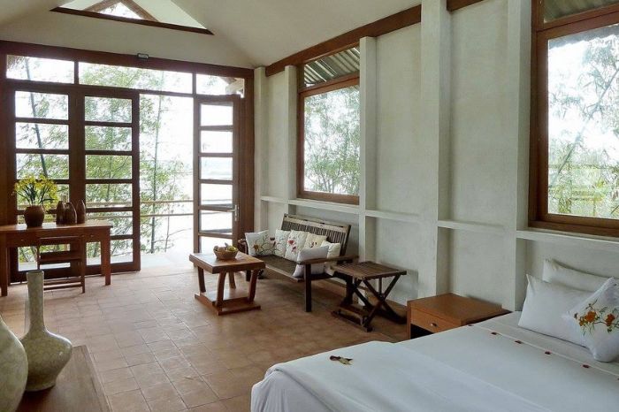 Các resort đều sử dụng vật liệu tự nhiên như gỗ và tre, tạo nên không gian ấm cúng, gần gũi. Bên cạnh đó còn có các homestay xinh xắn, mang đến trải nghiệm sống như người dân địa phương.