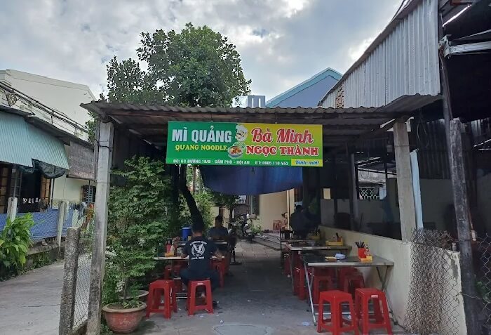 Nếu bạn muốn ăn mì Quảng gà Hội An hay mì tôm thịt vị “chính hiệu” thì cũng có thể ghé quán Bà Minh. Quán này nằm gần phố cổ nhưng giá rất bình dân, chỉ từ 25.000 – 30.000đ/tô.