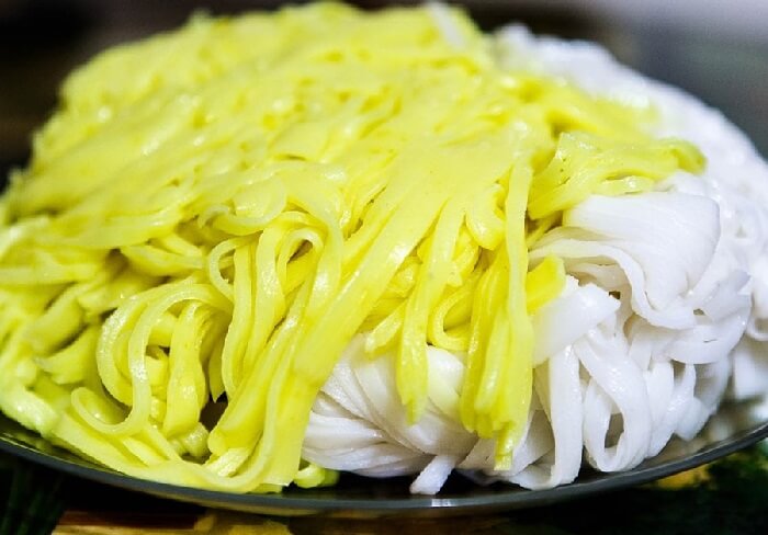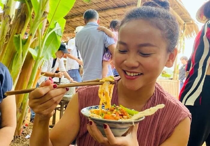 Người dân ở đây đã thay bột mì bằng bột gạo để làm nên sợi mì to như mềm, dai. Kết hợp với các nguyên liệu, tạo nên hương vị độc đáo, mộc mạc nhưng tinh tế, trở thành món ăn biểu tượng của nơi này.