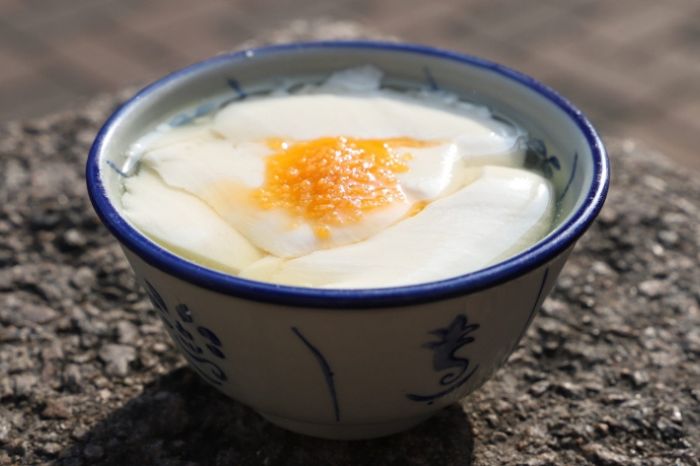 Tào phớ, những món ngon tại Hội An được nhiều bạn trẻ yêu thích. Món ăn này mang hương vị thanh ngọt, ăn kèm với nước cốt dừa béo béo, sương sáo mát lành thêm chút đá lạnh giải nhiệt.