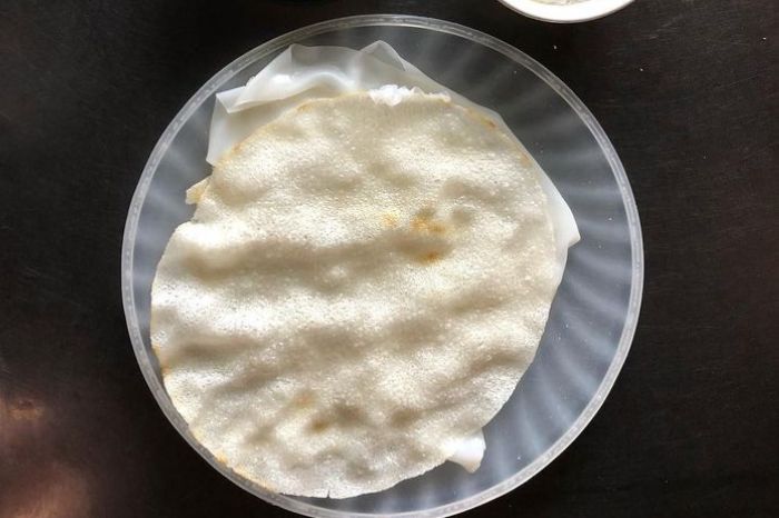 Bánh được làm từ bột gạo pha loãng, tráng thật mỏng rồi hấp trên nồi nước sôi. Bánh ướt khi còn nóng sẽ được thoa thêm lớp dầu khử bằng củ nén, sau đó bỏ vào bánh tráng nướng giòn, có thể gập bánh hoặc để nguyên.