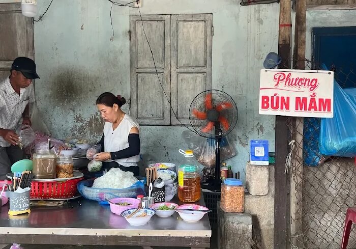 Bún mắm cô Phượng có vị cay cay nhưng ăn rất cuốn. Tuy nhiên, bạn nào muốn thử phải đến sớm nhé, vì quán chỉ bán buổi sáng tới 10h30 thôi.