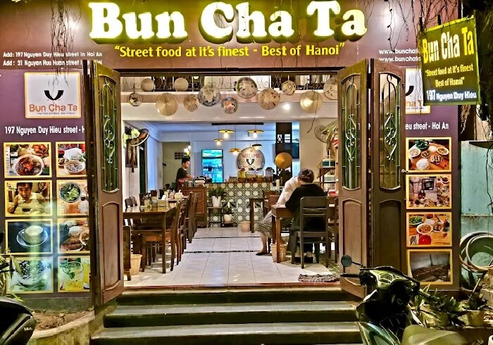 Tọa lạc trên con đường gần biển Cửa Đại, quán bún Hội An này trở thành địa chỉ yêu thích của nhiều du khách, nhất là du khách nước ngoài. Bún chả Ta phục vụ món bún chả Hà Nội truyền thống nhưng vị được biến tấu một chút cho phù hợp với người địa phương.