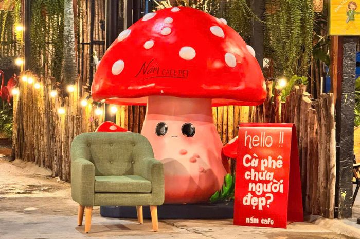 Nấm là quán cafe gần Hội An được những bạn nhỏ yêu động vật rất yêu thích. Không gian quán cực kỳ rộng rãi với khu vực uống cafe riêng và khu vực nuôi các loại thú cưng xinh xẻo.