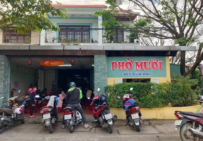 Đây cũng là quán phở Hội An lâu năm được rất nhiều vị khách dành lời khen. Cũng như các quán khác, phở Mười nấu theo kiểu người Quảng. Nước lèo trong, thanh, có thêm đậu phộng bùi bùi dậy vị.