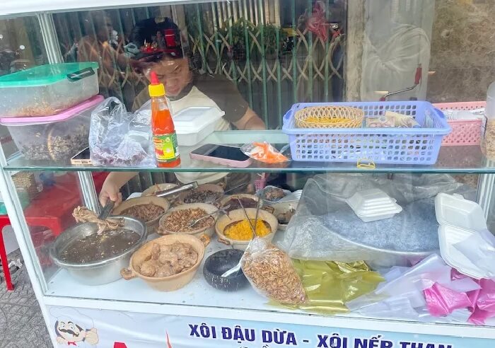 Món xôi đậm chất quê này chinh phục thực khách bởi hương vị mộc mạc giữa hạt nếp, đậu đen, đậu xanh, đậu phộng, mè đen và dừa. Xôi mềm, thơm bùi, lý tưởng cho những ai muốn một bữa sáng truyền thống ngon miệng.