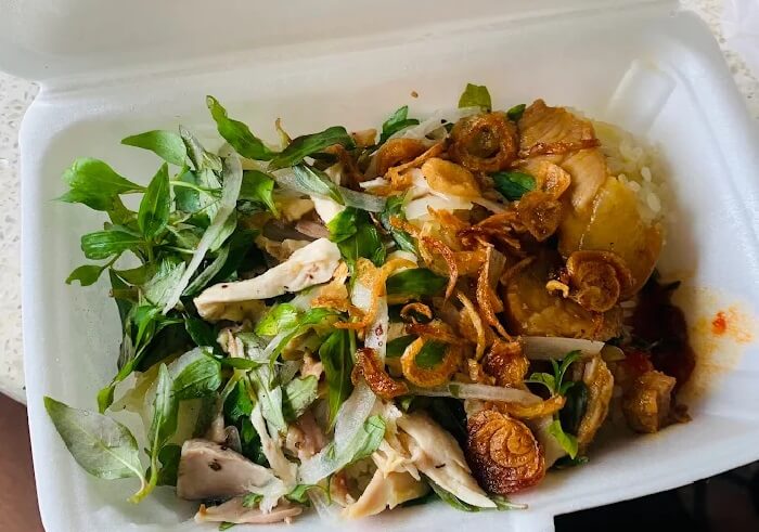 Buổi sáng mà không biết ăn gì, ghé ngay quán xôi Hội An Lan để ăn xôi gà nhé. Xôi gà đây ăn trộn gỏi hành tây rau răm có bỏ thêm hành phi khá là ngon để ăn buổi sáng. Nếu bạn không ăn xôi gà thì có thêm xôi xá xíu để chọn.