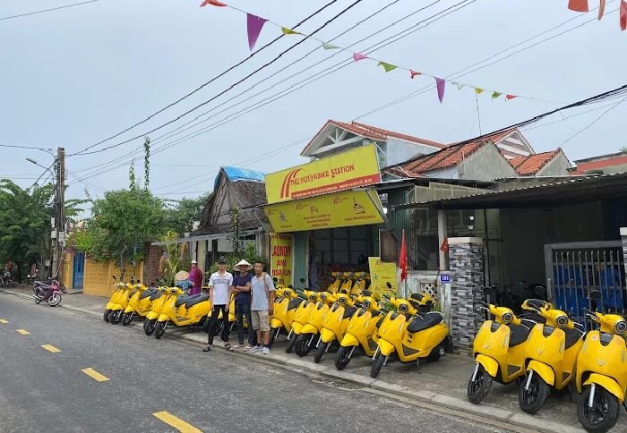 Cuối cùng trong danh sách địa điểm cho thuê xe máy Hội An vẫn chuyên dòng xe máy điện – The Motorbike Station. Cửa hàng đầu tư toàn bộ là xe điện mới với màu vàng nổi bật. Ngoài ra còn có một số mẫu xe phá cách và xe số nhưng không quá nhiều.