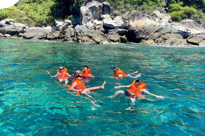 | 10h30 | Đoàn lên cano đến nhà hàng ở Bãi Ông thay trang phục để bắt đầu tham gia lặn biển. |