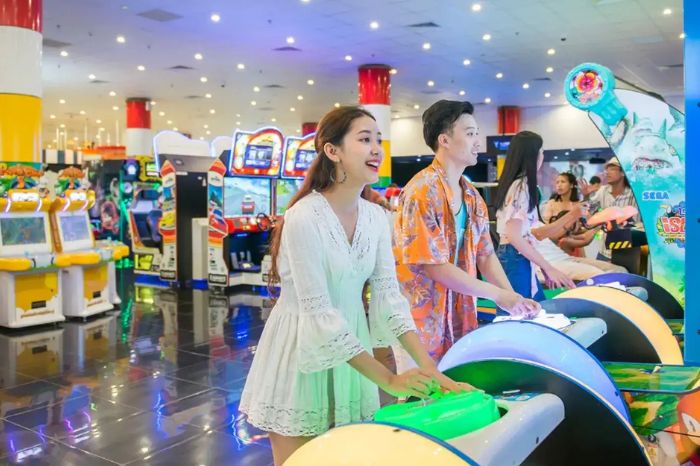 - Thoả sức với những trò chơi trong nhà hấp dẫn, cùng nhau xem phim 3D, 4D và màn trình diễn nhạc nước đầy mãn nhãn.