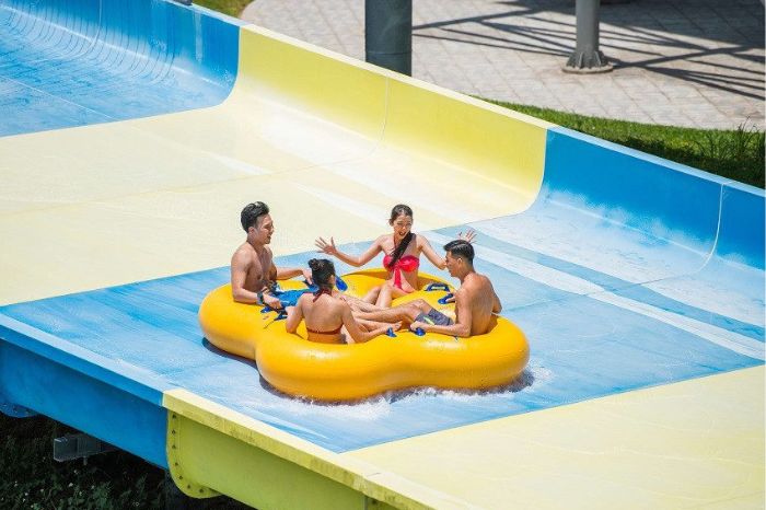 - Thoả sức đắm mình trong thế giới nước đầy sảng khoái, trải nghiệm sông Lười, đường trượt siêu tốc và nhiều trò chơi mới lạ.
