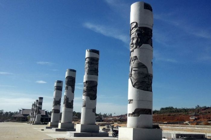 Ngay ở lối cổng vào, du khách có thể nhìn thấy 8 cột trụ khổng lồ đứng sừng sững. Mỗi cột trụ có chiều cao 11,2m và đường kính hơn 1,2m.